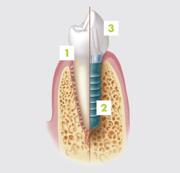 即使最好的修复体也始终是异体,需要长期护理。相比之下,牙种植体只是一种人工牙根,待伤口愈合后可与身体融合,其功能类似于天然牙根。