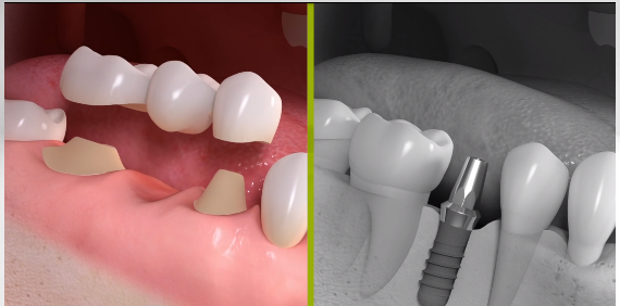 使用传统牙桥时,必须磨小缺牙左右两侧的健康邻牙以支撑牙桥。使用种植体填补牙间隙时,邻牙不受影响,可完整保留天然牙质。